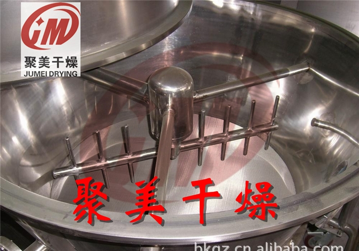 空气经加热净化后,由风机引入下部导入 ,穿过料斗的孔洞板。在工作室内,经搅拌和负压作用形成流态化,水份快速蒸发后随着排气带走,物料快速干燥。