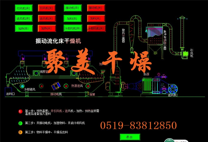 我公司在常规振动流化床干燥机基础上,作了大量的改进工作,使其适应鸡精干燥生产的工艺要求。