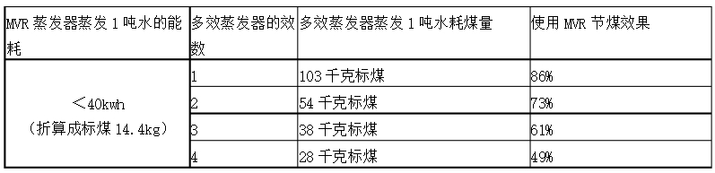 MVR蒸发器与多效蒸发器煤消耗对比