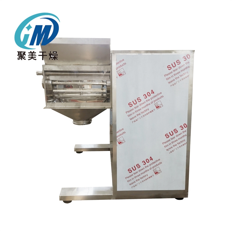 摇摆制粒机可以将粉末混合成颗粒,也可以将散装的干燥物料粉碎成所需的颗粒。本机具有合理设计的冲孔网、冲孔杆,可粉碎大块易碎材料,可得到基本颗粒的形状和大小。本机组装、拆卸、清洗方便,符合GMP要求。适用于医药、化工、食品等行业干燥的块状原料及造粒生产中的其他不规则颗粒的破碎,增加流动性,也适用于不合格片剂的再造粒。