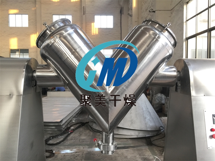 V型混合机,因其v型料筒而得名,v型筒体主要由v型筒体、封闭支架和传动装置组成。混合机出口装有一个密封蝶阀。混合机在密封状态下运行,在混合过程中没有灰尘,物料由两个不同长度的筒体在旋转过程中而产生不同的落差,使物料相互交叉混合,混合均匀度可以达到99%以上,筒体配有两个入料口,筒体由304-2B不锈钢制成,内外壁抛光。机器配备定时控制装置,操作简单,出料时可启动点动按钮,使出料口对准料筒。