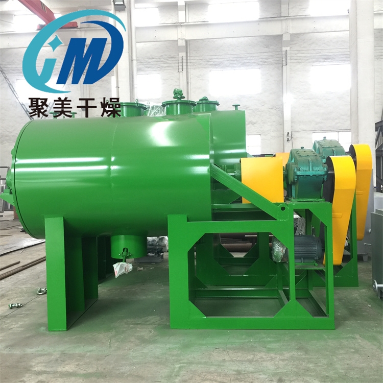 因此,它特别适用于干燥不耐高温、高温下易氧化或干燥时易产生粉末的物料(如各种燃料),以及在干燥过程中去除蒸汽或溶剂时必须回收的物料。真空耙式干燥机中被干燥物料含水量或溶剂量最高达到90%,而最低的只有15%。被干燥物料有浆状、膏状的、粒状的、粉状的,也可以是纤维状的。这些物料干燥后的含水率一般达到0.1%,甚至0.05%。