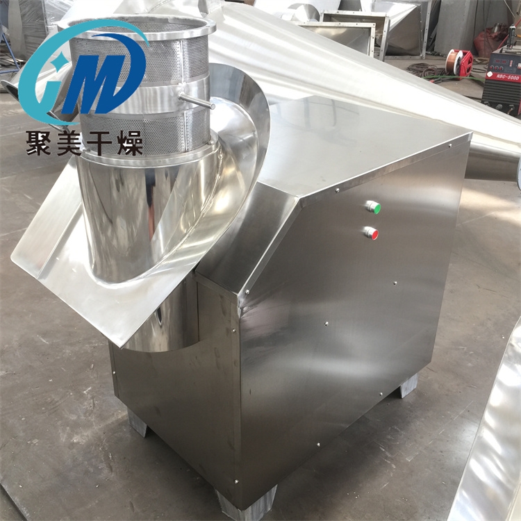 旋转式制粒机是通过机械转动使压料叶作相向旋转,压料叶成一定角度使物料向下碾刀,碾刀上的大角螺旋叶将物料推向筛子筒壁,再通过刀片,将物料从筛孔挤出而成颗粒。主要用于制药、食品、冲剂、化工、固体饮料等行业,凡与物料接触部份均采用不锈钢制造,外型美观,结构合理,制粒成型率高,颗粒美观。